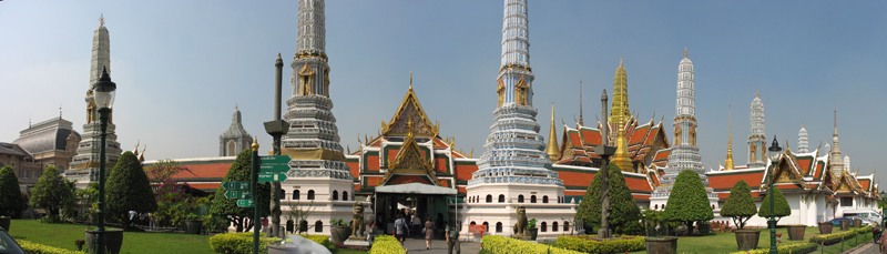 В Королевском дворце бывает всякий турист, приехавший в Тай. Распоследний паттайский пакетник будет вытащен своей турфирмой из автобуса и запущен на часовую прогулку по тайским теремкам. Поэтому народу там много. Но я эти теремки все равно люблю. К тому же с прошлого года я научилась клеить панорамы, а это умение при съемке внутри стен очень пригодилось.