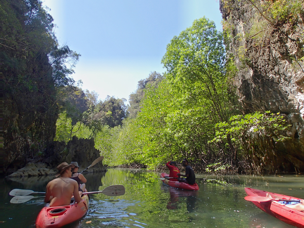 Поддавшись порыву, вечером в процессе неудержимого шопинга купили герморюкзак на 30 л, стоил он около 2000 бат. Обычно все ходят на каякинг с гермомешками через плечо, и такие мешки выдают во время экскурсий и в изобилии продают в магазинчиках Аонанга. Но Ран захотел, чтобы были нормальные лямки и чтобы туда все поместилось на двоих. Ну и еще с таким рюкзаком можно ходить под дождем в лес, бросать его в грязь, а потом достаточно тряпочкой протереть. Рюкзак жестко тестировали в бассейне — если утопить его и сесть сверху, то вода через скрутку немного просачивается. Но когда этот рюкзак захлестывают волны или сверху мочит дождь, то внутри сухо. На морских волнах мы его впоследствии тоже тестировали.