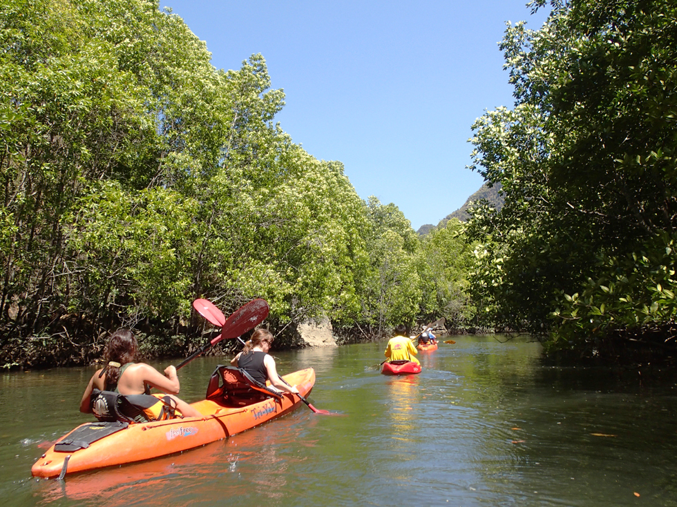 По окончании каякинга все помылись, переоделись, а после группу перетасовали: у кого была экскурсия на полдня, возвратились в Аонанг, а мы брали полный день и нас повезли обедать и купаться.