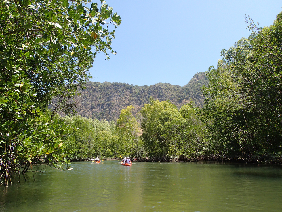 Корни мангров переплетаются, некоторые протоки весьма узкие.