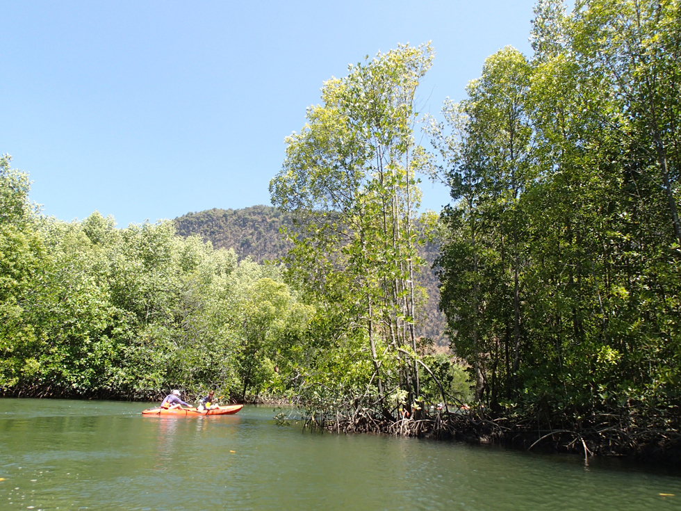 В море впадает река, поросшая мангровыми деревьями. Она течет по узкому, извилистому и очень живописному ущелью.