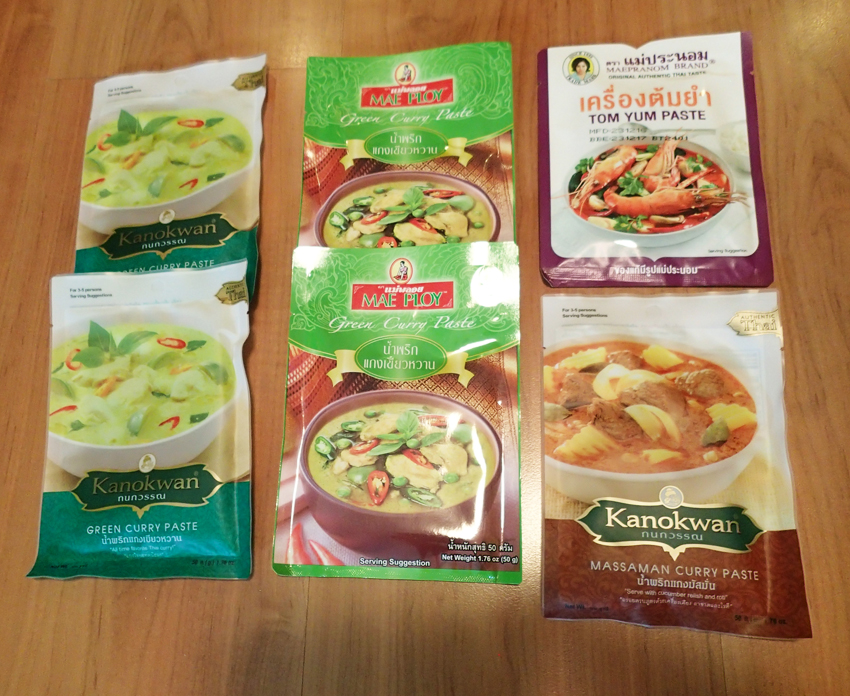 Готовые заправки для карри. Они на наш вкус довольно острые, но я люблю тайскую кухню, а на зеленое карри мы и вовсе подсели в этот раз.