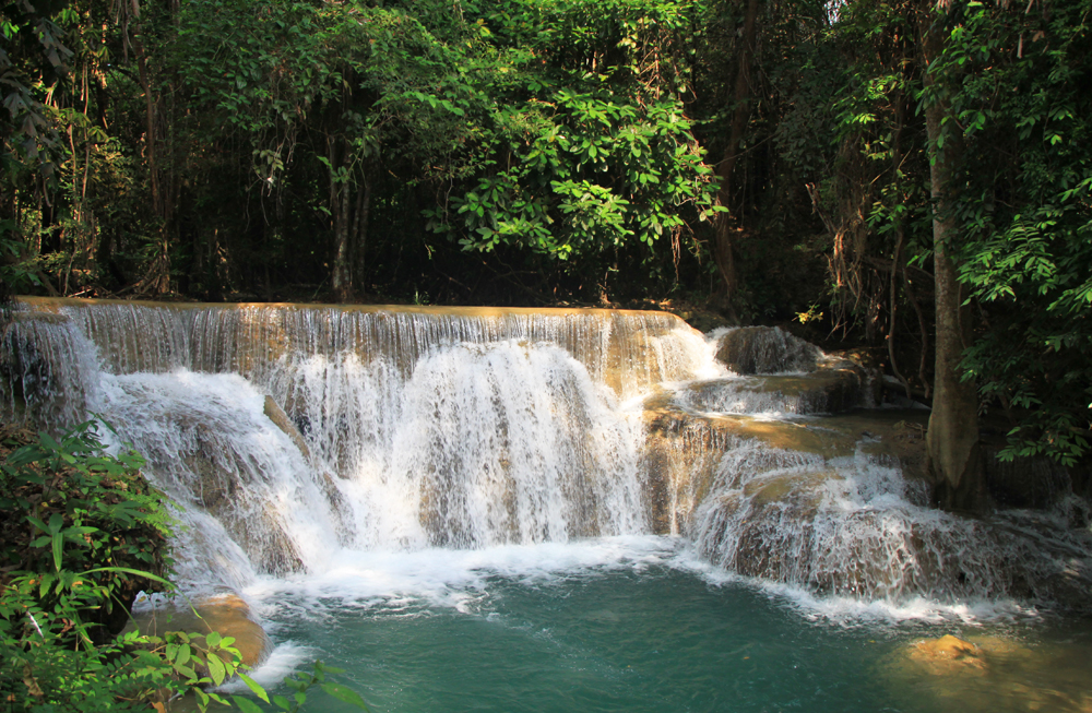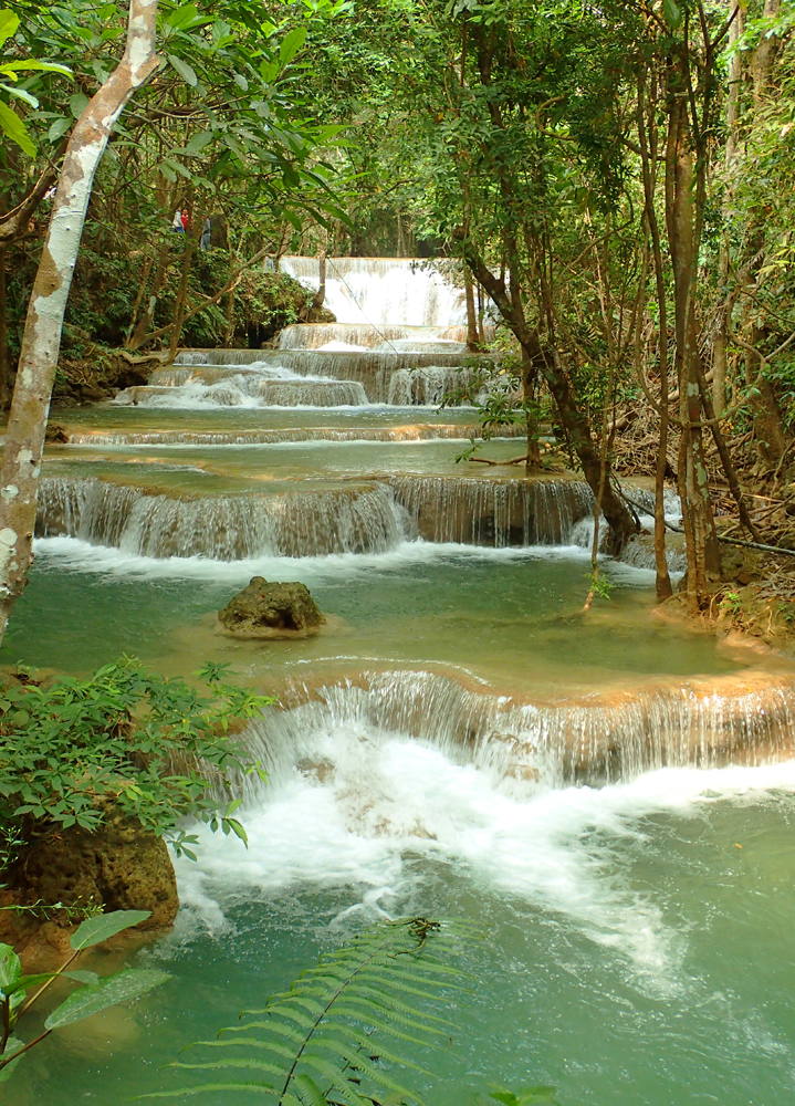 А меж тем Хуай Мэкамин красивее Эравана. Те же семь уровней, можно купаться, к тому же тут проложены нормальные дорожки вдоль всех каскадов, так что водопад доступен слабоходящим и людям с детьми. В отличие от Эравана, где к верхним каскадам приходится карабкаться по воде, мокрым корням и камням.