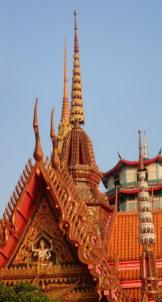 Второй раз мы приехали к храму в солнечную погоду. Закатный свет очень идет этим пагодам.