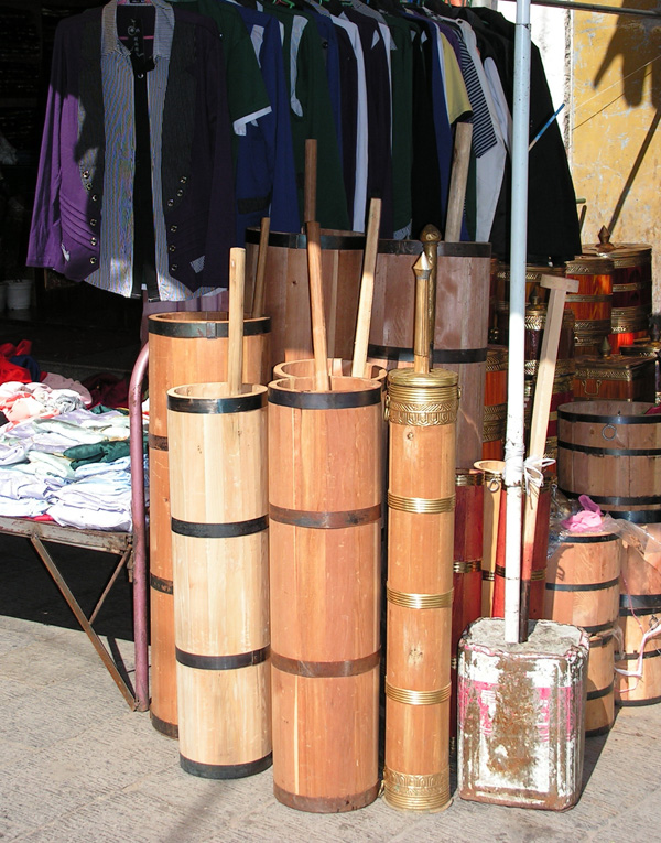 А это ступы для тибетского чая. Ингредиенты засыпают и заливают в такую ступу, взбалтывают все, чтобы получилась эмульсия, а дальше с энтузиазмом пьют: