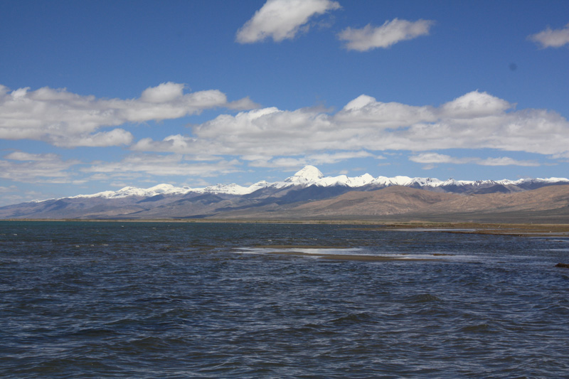 Вода озера считается живой и целебной, а омовение препятствует перерождению в низших мирах. Купаться в озере как-то не принято, и поэтому мы бродили по колено в воде и радовались жизни. На мелководье вода теплая. Я думала, что многочисленные тибетские озера соленые и по сути своей есть остатки моря, поднятого при столкновении двух материков. Но нет, все встретившиеся нам озера были пресными, мы проверили :-) В озере водится рыба, которую нам предъявили в сушеном виде в местном чайном домике.