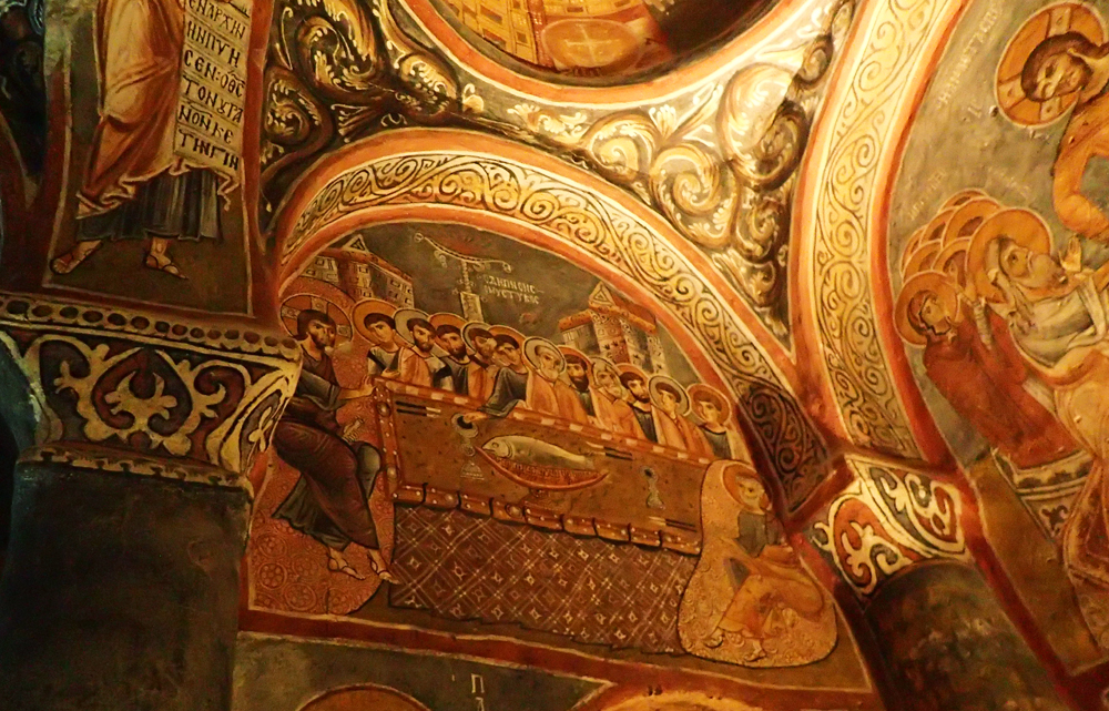 Больше тысячи лет назад в Каппадокию из Константинополя уходили жить монахи, которым не нравилось иконоборчество. Они рисовали в пещерных храмах всё, что что им не давали рисовать в столице. И рисовали хорошо. Турки впоследствии большинство фресок испортили, особенно лица, но успели не везде, кое-какие фрески уцелели.