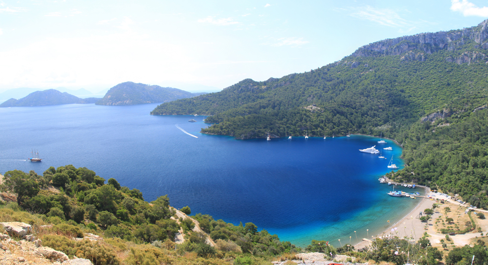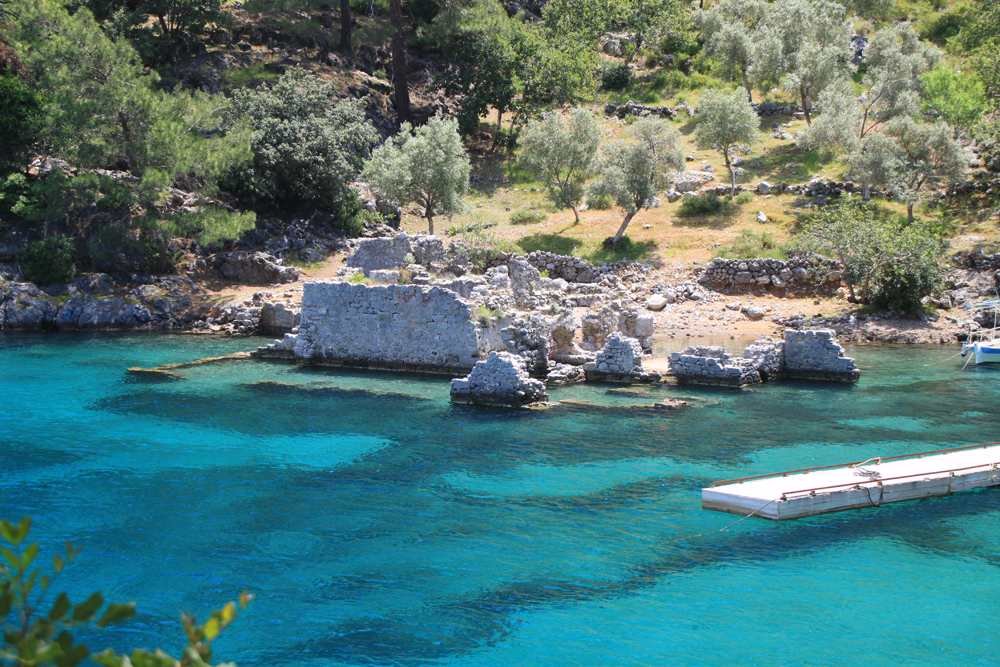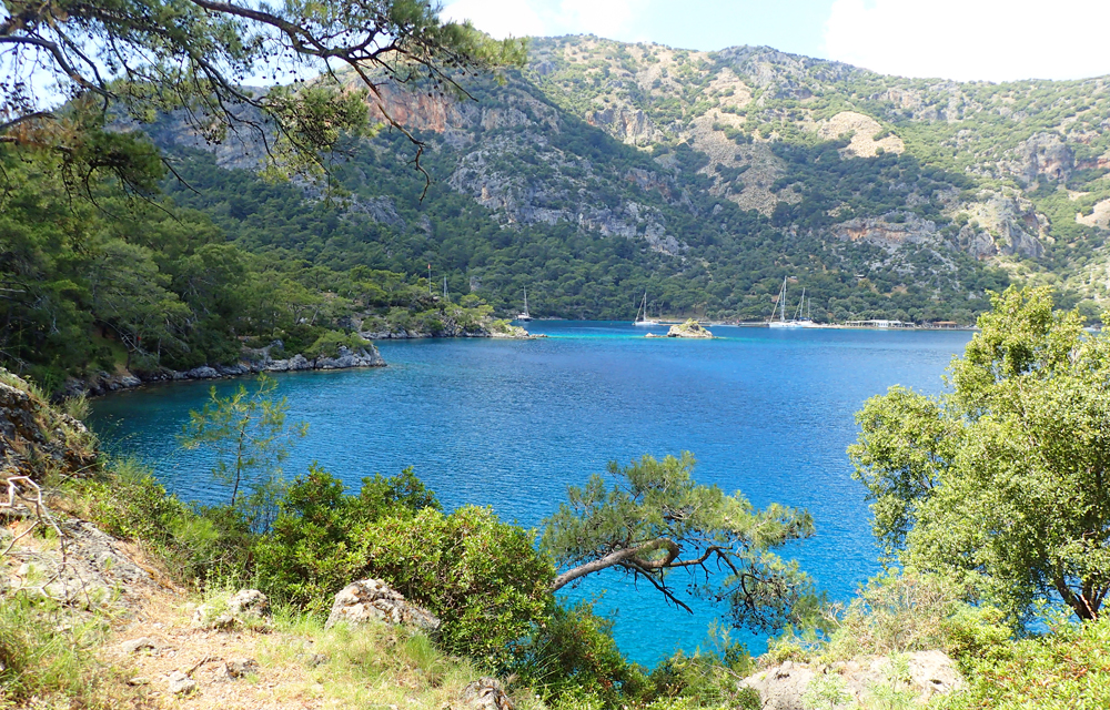 На третий день автопутешествия мы решили добраться до бухты Хамам. Найти про эту бухту адекватную информацию оказалось практически невозможно, потому что гугл сразу предлагает что? Конечно, сходить в ближайший хамам по сходной цене. Но я знала, что бухта входит в программу водных экскурсий из Фетхие. И надеялась, что вдруг там и вправду остались выходы термальной воды. Она же, наверное, не просто так хамам.