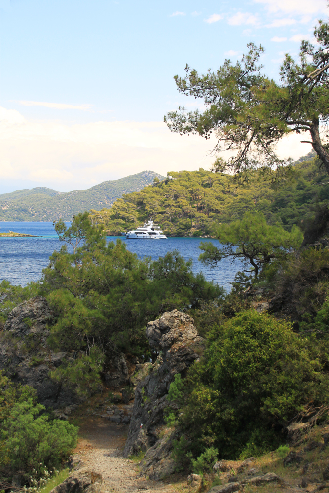 Тропа живописная. Сперва мы увидели бело-красную разметку, которая вообще является основным видом разметки в Европе. Но потом мы с удивлением нашли указатель «Likya yolu». То есть турки пытаются построить продолжение ликийской тропы, которая вообще-то закончилась в Каякёйе (ну ладно, в Фетхие).
