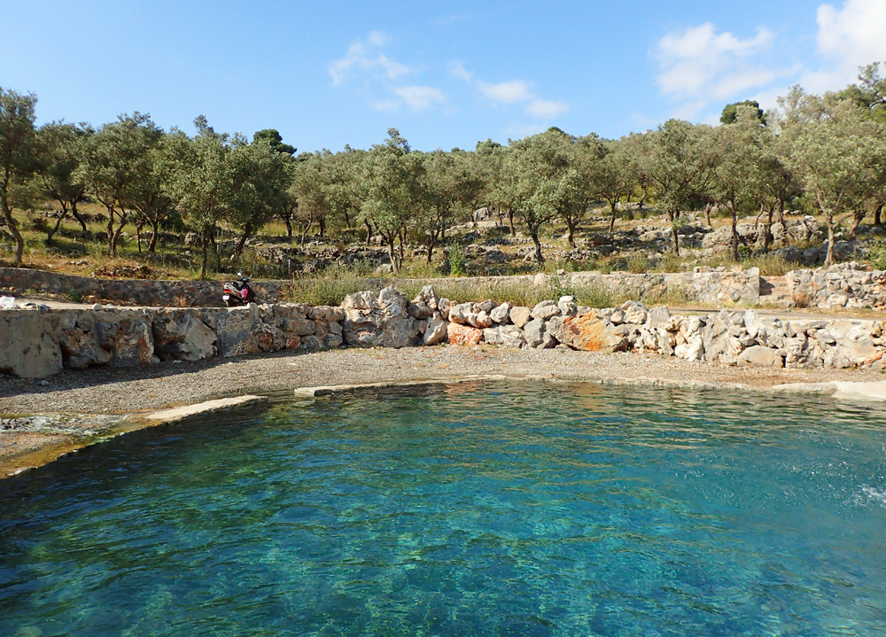 Вот и бухта Хамам, а в воде — руины хамама. Датировать сооружение невозможно. По крайней мере, у меня ничего найти по теме не получилось.