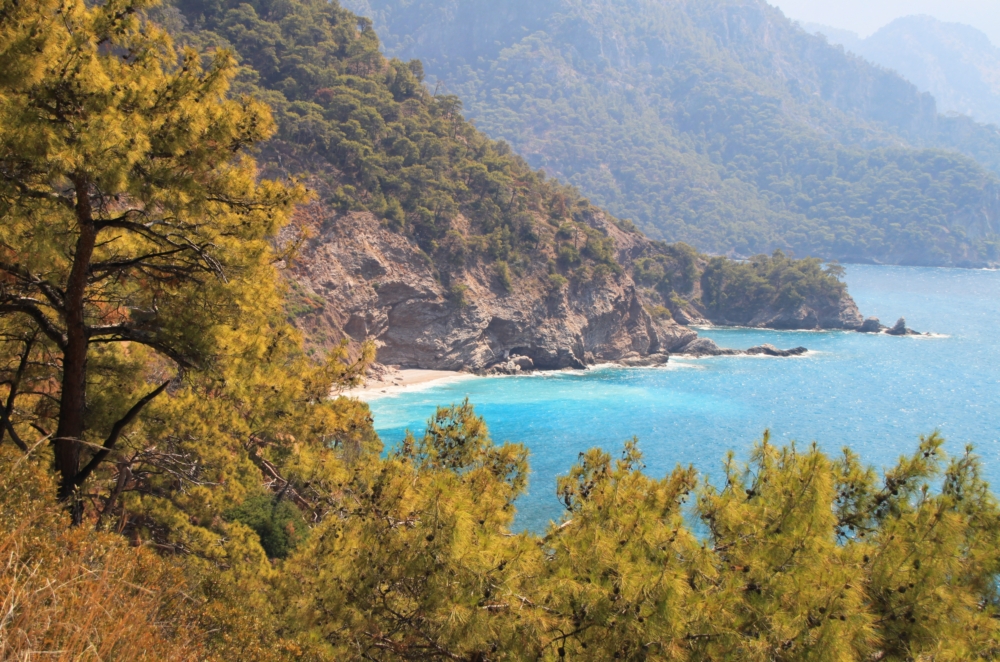 Утром мы поднялись на 200 вертикальных метров над Олюденизом в сторону Бабадага, полюбовались панорамой залива и аккуратно сползли вниз. Палки очень нужны на этом маршруте! Ради них и ради инструментов мы и брали этот дурацкий багаж, а вообще мы и без него умеем путешествовать.