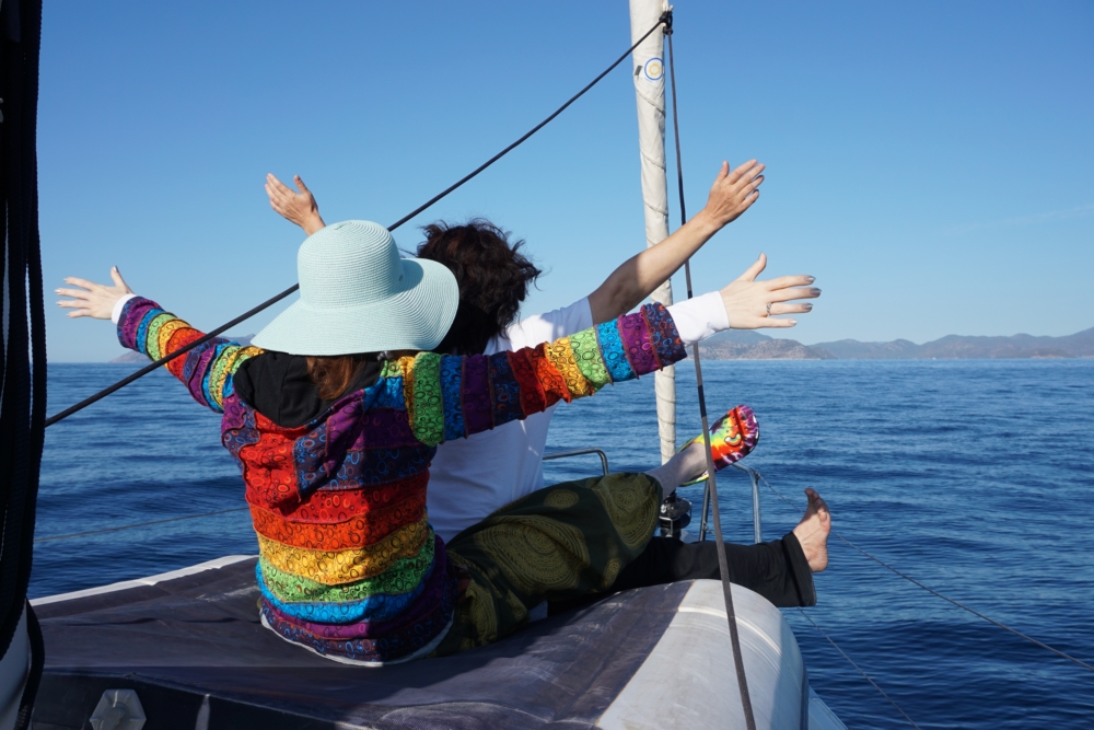 Возились мы довольно долго, вообще место для застревания цепи было неподходящее – в проливе возле соседних яхт. Но спасло то, что нас много: мужчины вдвоем возились и разбирали механизм лебедки, а мы держали яхту подальше от остальных лодок. В конце концов освободили цепь, собрали все запчасти и благополучно встали на якорь.