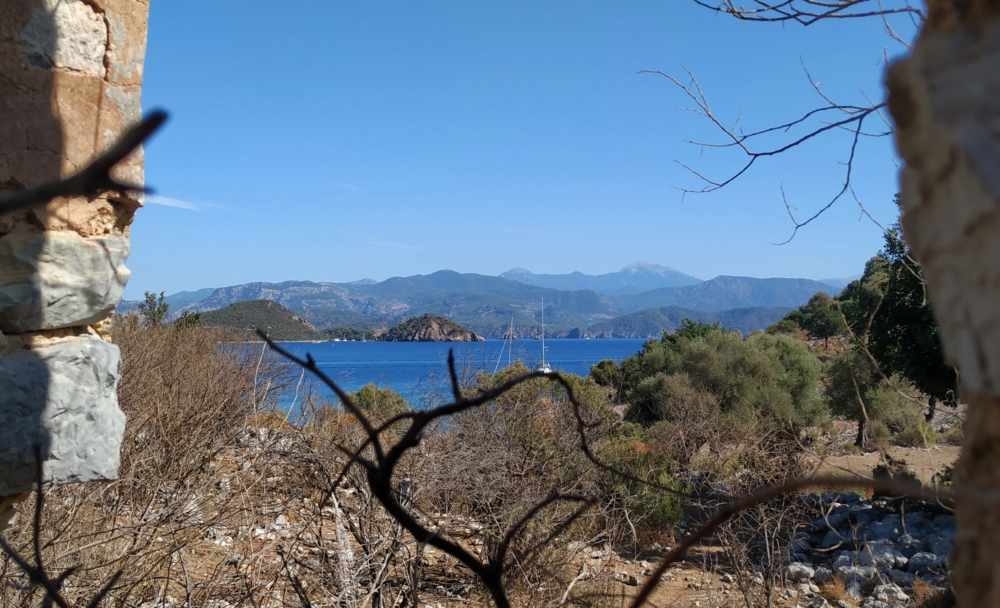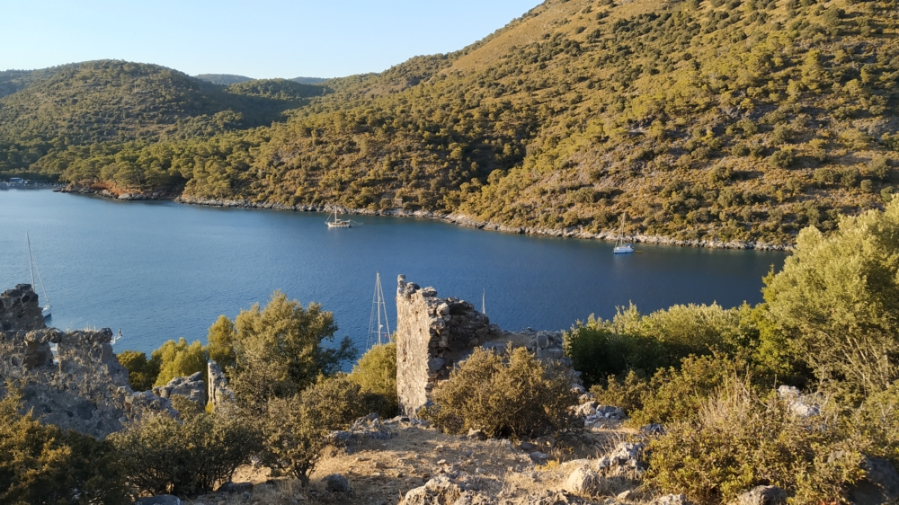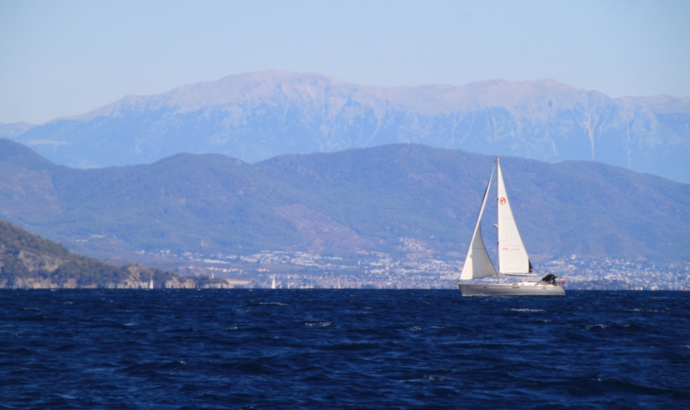 Из-за того, что накануне мы прошли мимо Скопеа Лимани, наш путь 1 октября выглядел довольно странно: выйдя пораньше из Фетхие, мы сперва завернули на запад в Скопеа Лимани, а после обеда отправились обратно на восток через залив Фетхие к острову Гемилер.