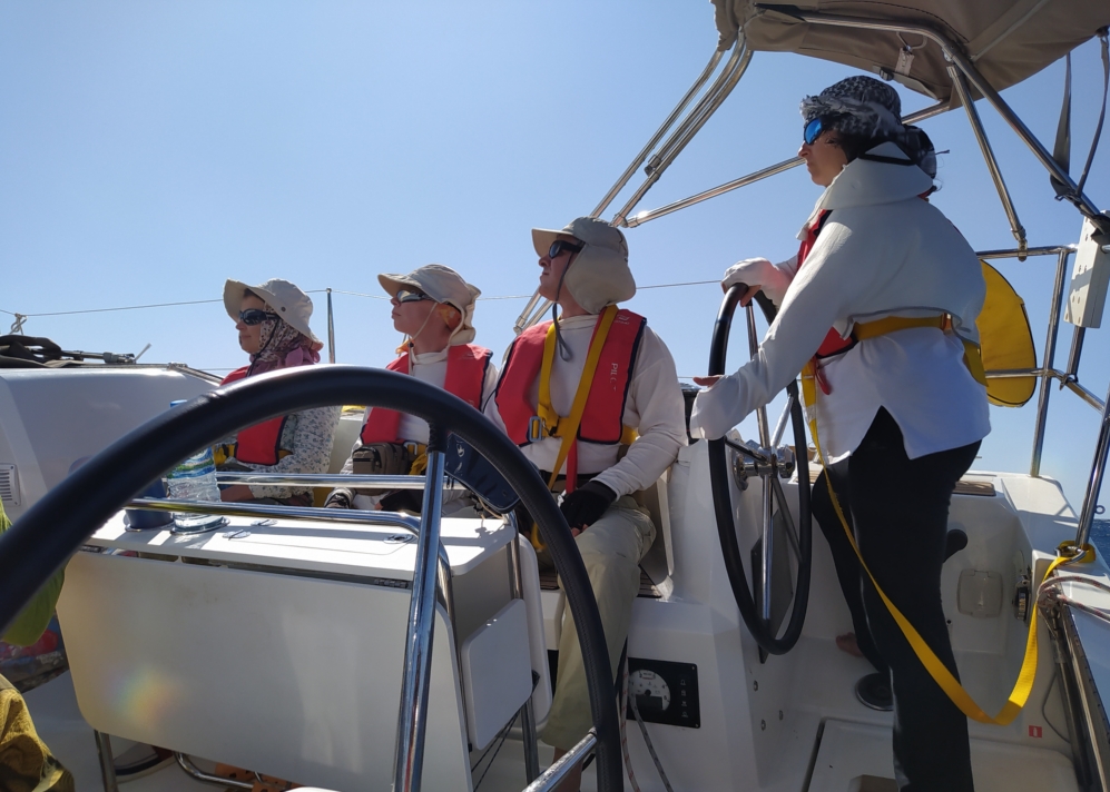 Ветер был попутный, довольно сильный. Уже в проливе зарифили паруса, одели жилетки и пристегнулись.