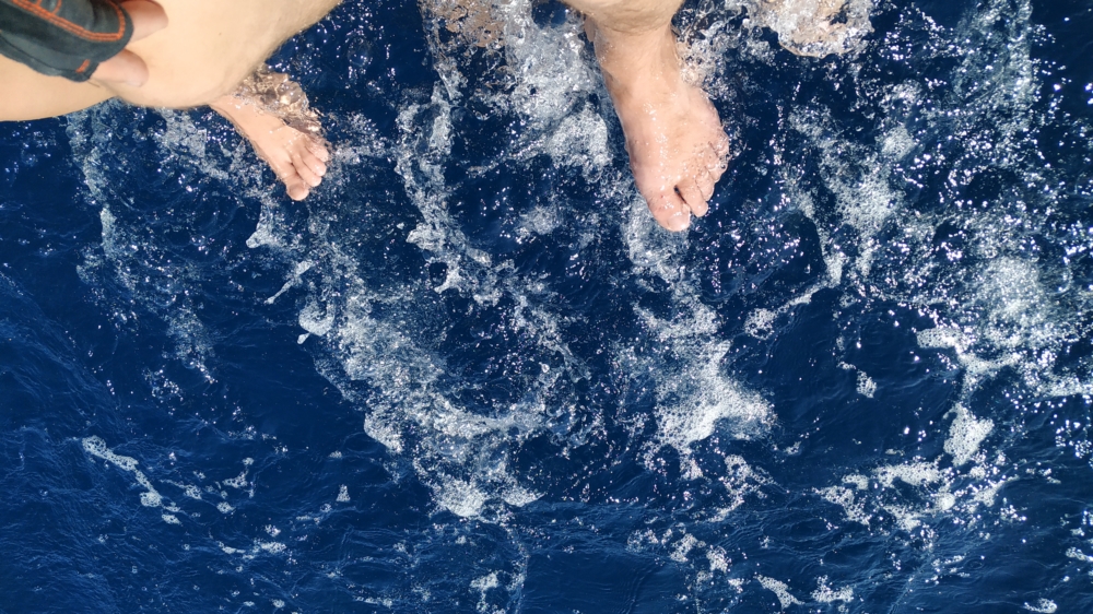 Мы заинтересовались — а что будет, если ногами поболтать? Оказывается, скорость падает. Капитан велел прекратить болтать!