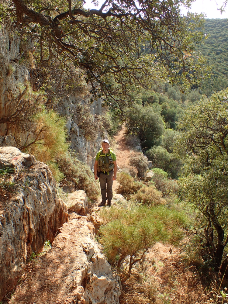 Верхняя тропа (которая справа и дальше от моря) длиннее и скучнее, она идет по верхнему плато, где есть лишь камни и оливы. По ней мы шли в бухту, а возвращались по нижней тропе.