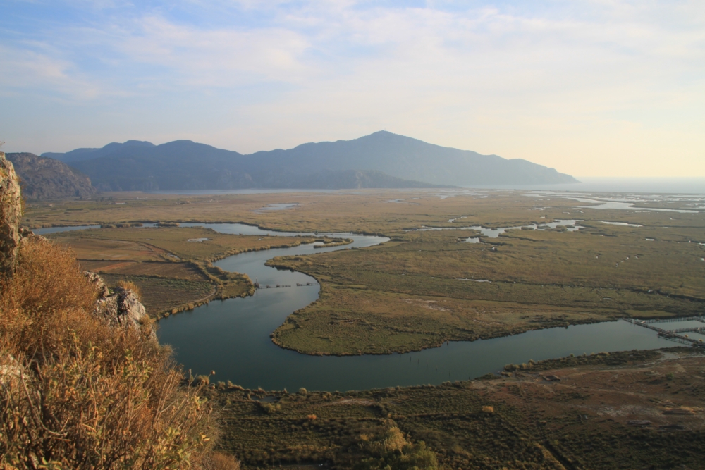 Каунос расположен на границе Ликийского и Карийского царства, она как раз проходила по реке. Вид на реку с высоты: