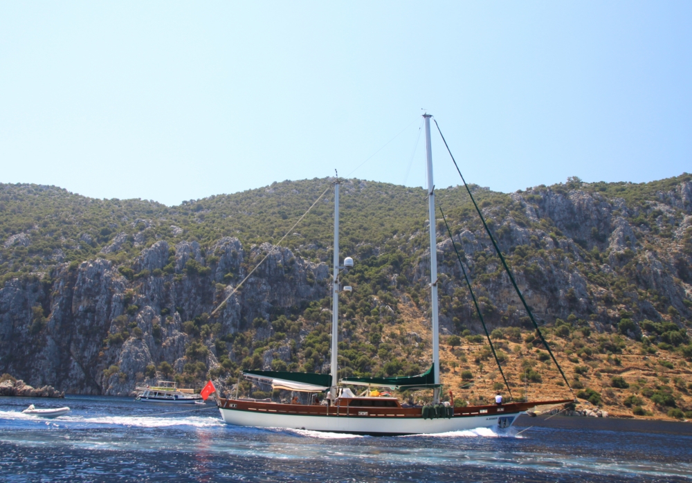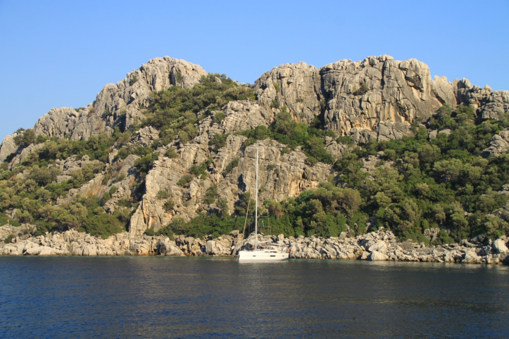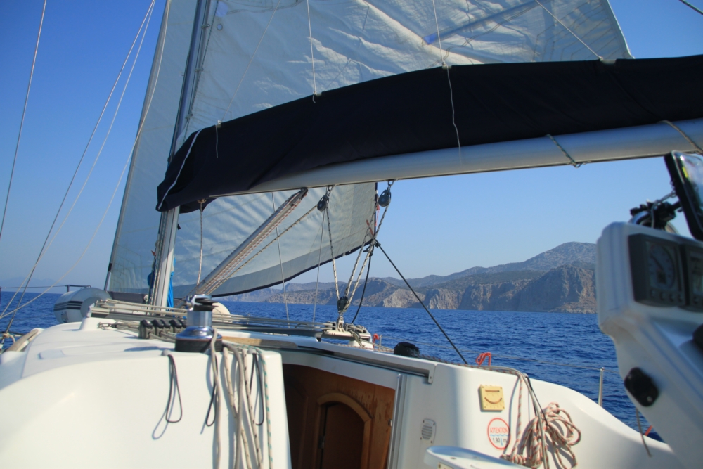 После Мармариса переходы стали более короткие. Мы подстраивались под ветер: в этих краях раздувает днем и под парусом как раз хорошо идти. А утром часто штиль. Но надо прогноз смотреть, ветра в этом районе бывают интересные.