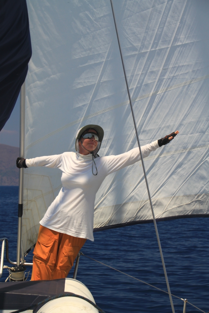 Встали на обед, потом шли до бухты Бозбурун, всего получилось 20 миль. На нашей улице снова был бакштаг, ура! Ну и вообще мы стали через неделю работать гораздо слаженнее — быстро поднимаем грот, якорь уже закидывается с первого раза.