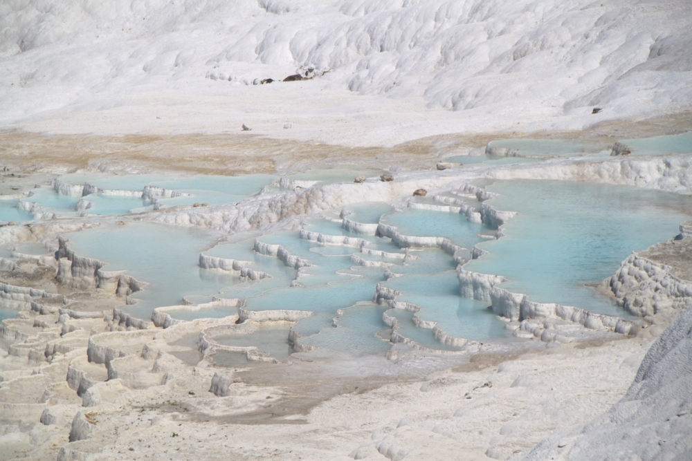 Вход на террасы теперь стоит 80 лир (а два года назад 35), а бассейн Клеопатры — 100 лир (а был 50). Зато бассейн внезапно открыт, наврал нам интернет! И народу там почти не было, потому что турков бассейн этот термальный не особо интересует.
