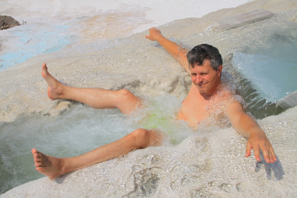 С начинающимся дождем мы залезли в бассейн Клеопатры и отмокали там два часа. Никто не мешал купаться в «шампанском» в самой приятной дальней части бассейна, только дождь на голову лился. Но внутри-то было тепло и пузырьки :-)