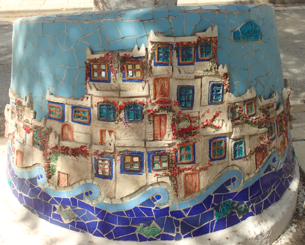 Если спросить, что мне больше всего запомнилось в Бодруме, то я отвечу: тумбы! На центральной аллее деревья окружены мозаичными тумбами, и я просто не могла от них оторваться. Так что сейчас будет много тумб дивной красоты: