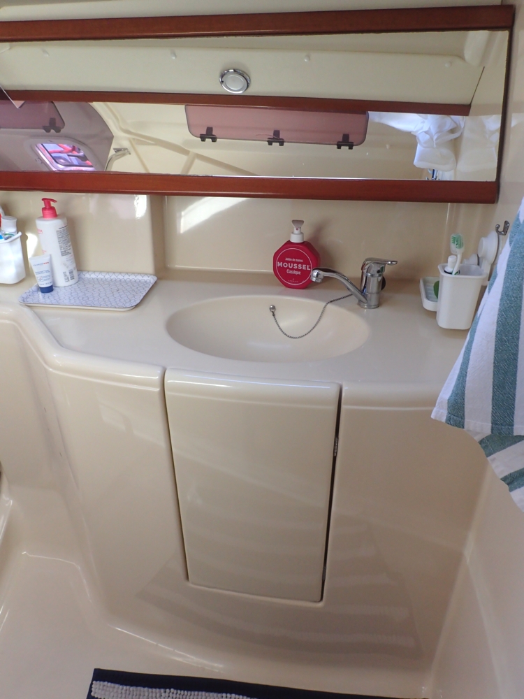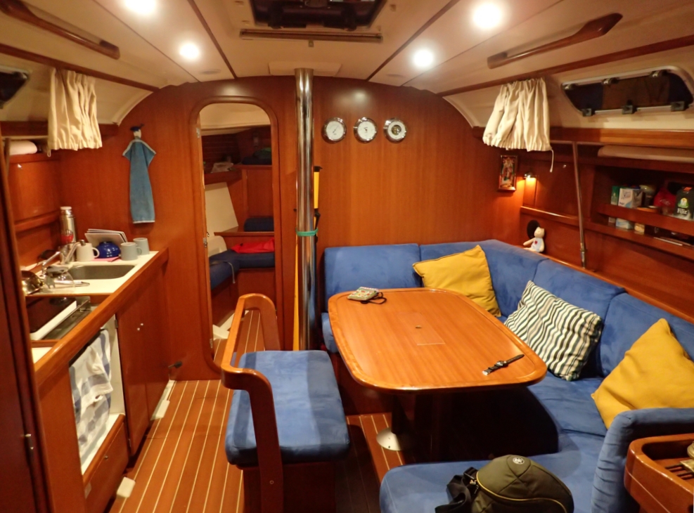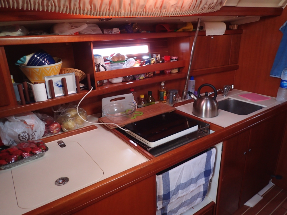 Из своего парусного вооружения у яхты был грот, убирающийся в лэзи бэг и огромный стаксель-генуя. Как выяснилось позже, старые частные яхты сыпятся не хуже, а даже круче чартерных. Эта яхта простояла всю зиму без ухода, поэтому у нее обросло водорослями дно, а при помывке сверху вода протекла в кормовую каюту и подмочила матрас. И вообще, нужно было расконсервировать лодку после долгой стоянки. Раньше мы этого не делали, ведь чартерная компания сама готовит лодку. Так что получили много нового опыта. Вот, например, баки с водой на долгую стоянку заливают слабым раствором лимонной кислоты, чтобы вода не зацвела. Надо их все тщательно промыть.
