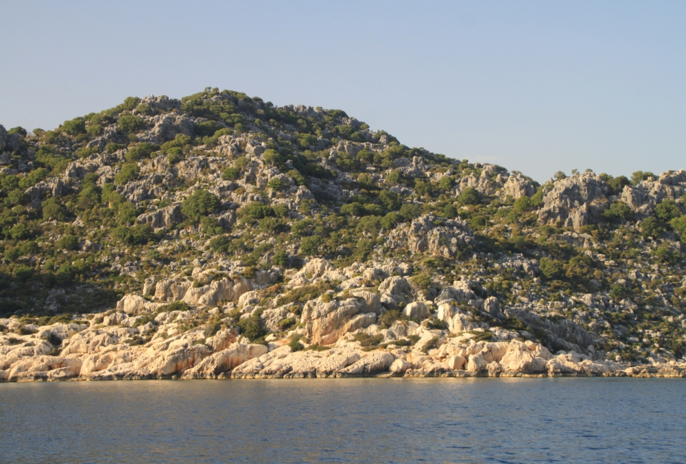 По хребту карабкаются ликийские гробницы. Первую неделю мы провели в Карийском царстве, а сейчас идем вдоль берегов Ликийского царства.