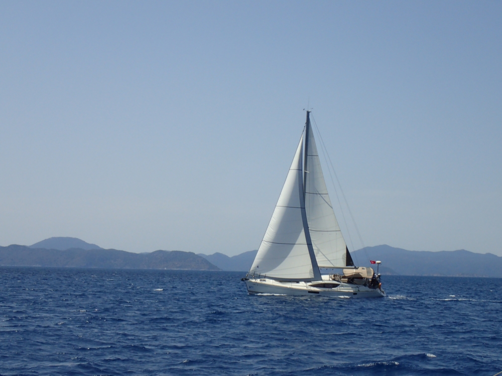 Пройдя остров Йилдыз, мы поймали 6-8 узлов бактшага и распустили одинокую геную. Полчаса прошлись под парусом напоследок.