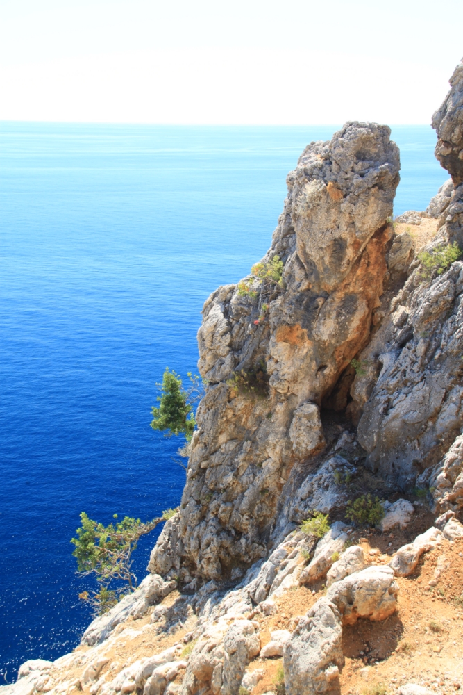 И сам пляж тоже милый, вода очень теплая, купаться приятно. Вместо песка тут мелкие-мелкие камешки. Пока пообедали, пока соков попили — оказалось, что придется ехать домой на закате. В этом неудобство поездки из Сиде в Аланью: туда утром солнце в лицо и обратно то же самое. :-)