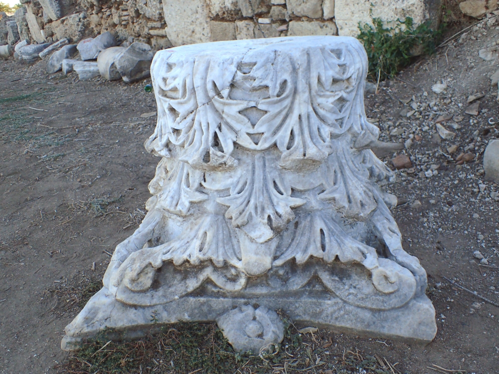 Когда-то тут был храм Аполлона и Афины. Турецкие реконструкторы наверняка поставили эти колонны заново, включив туда фрагменты старых колонн, а основной массив вырезали из нового камня.