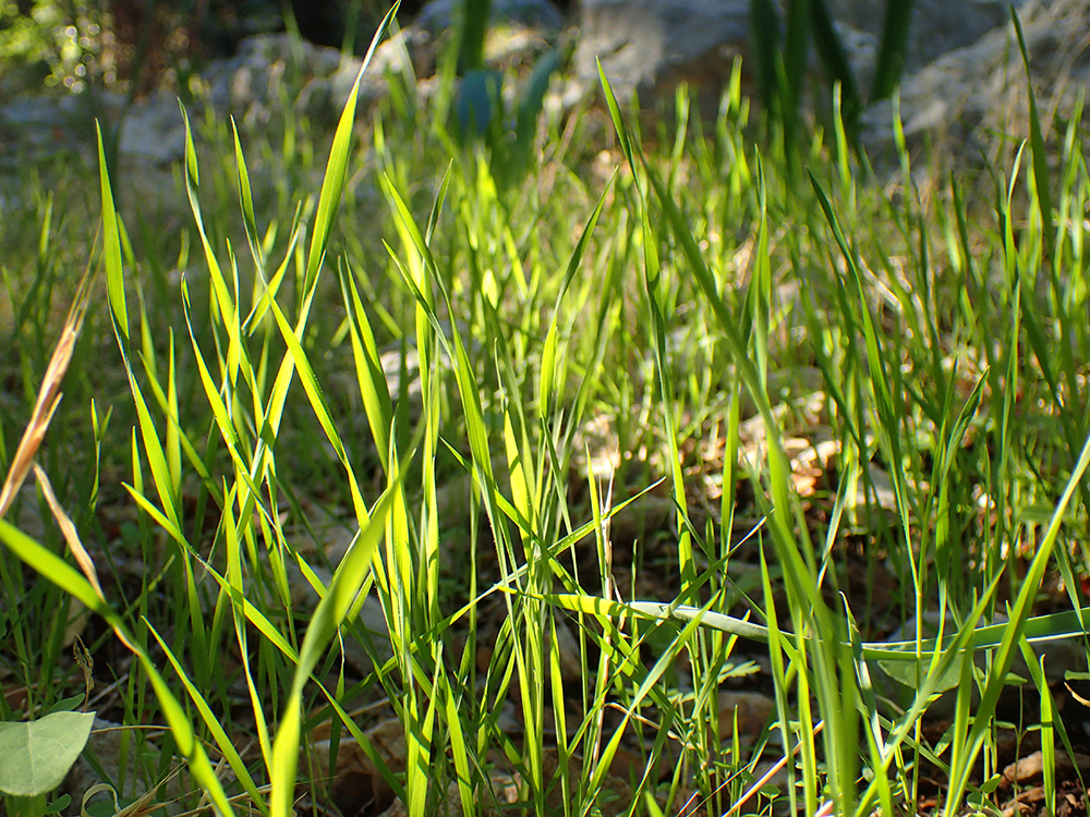 Весной, как и положено, зеленеет молодая травка и блестит на солнце.