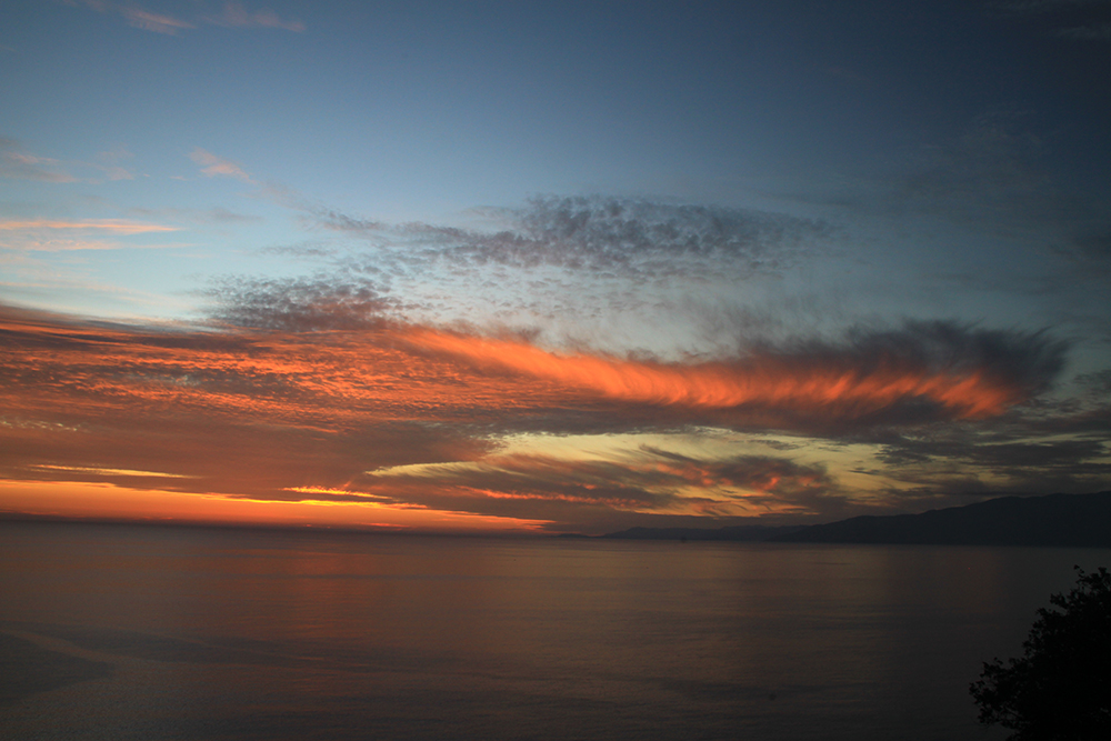 На маяке ставила палатки новая партия туристов, а мы продолжили спуск к дороге. Начинается закат и волшебные краски.