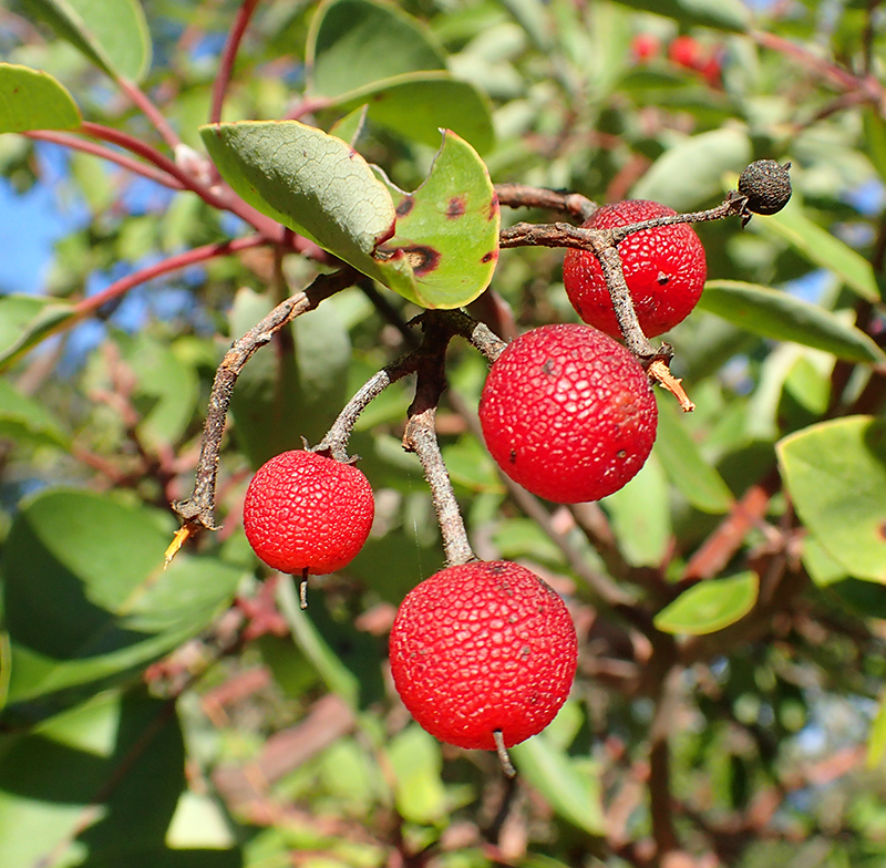 Некоторые ягоды даже стали опадать: опадает земляничник гроздьями и эти грозди висят на ближайших кустах :-)