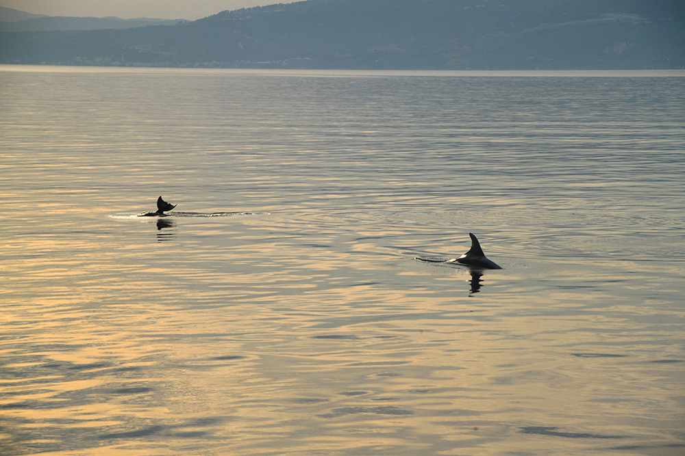 На рассвете вокруг нас плавали дельфины, и сам рассвет был прекрасен.