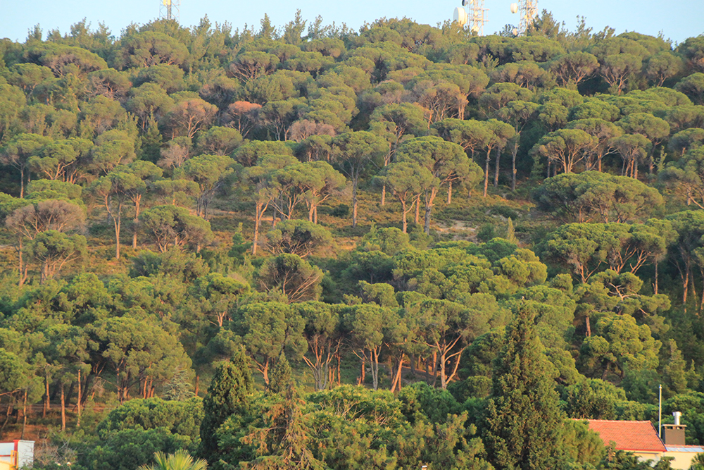 Мы ходили смотреть на город по сосновому холму. Этот холм за закате, вид из бухты.