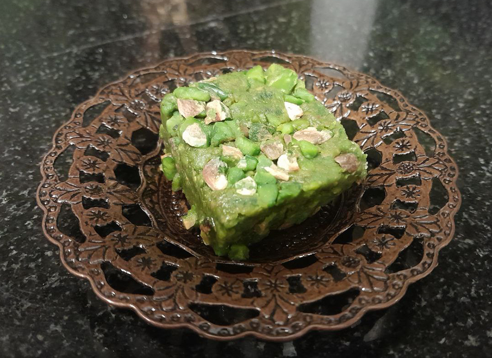 По сути, это даже не пахлава, это «фисташковая смесь». Так она называется. Тут суперские зеленые антепские фисташки и совсем немного сахара.