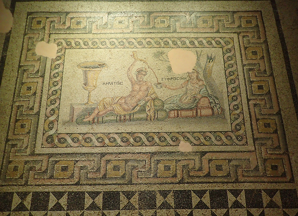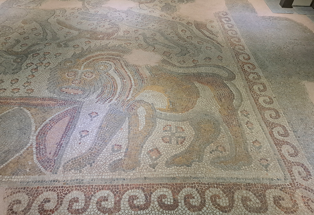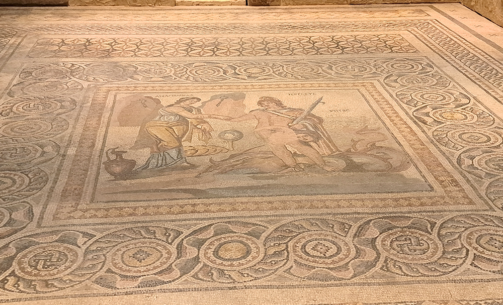 Бог Океан и его супруга Тефия. Это мозаика со дна бассейна. Меня сразу заинтересовал дракончик.