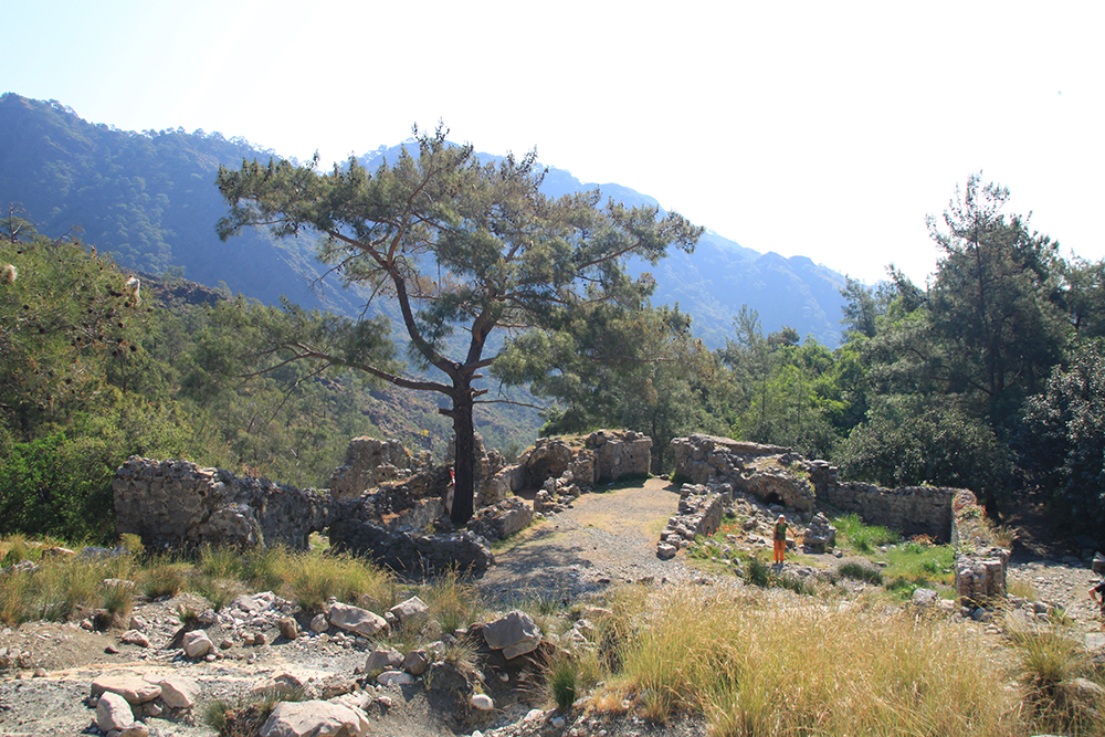 С автобусами нам в тот день не очень повезло: выходя, увидели, как с конечной уезжает TA08. Прождали следующий чуть ли не час (ходят они раз в 20-30 минут), прежде чем поняли, что в несезон водители просто не доезжают в этот дальний угол поселка. И точно: отошли в сторону центра Текировы примерно километр, сели в автобус и пронаблюдали, как к стартовой точке Ликийки он не поехал. Так что имейте в виду: с мая по октябрь, наверное, доезжают все, а вот в зимний сезон один из трех поедет, и то не факт. Так что надо прибавить к основному маршруту еще километр-другой :-)