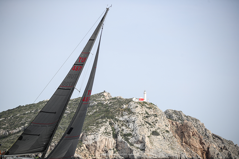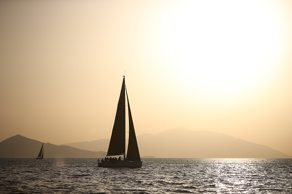 Почти все на гонке с черными кевларовыми парусами. Белых совсем чуть-чуть.