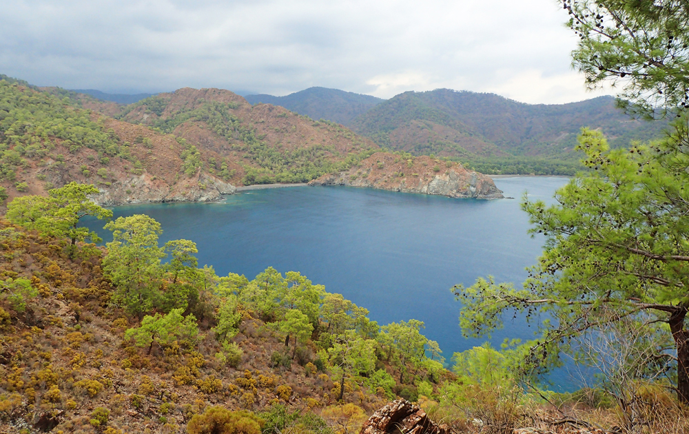 Вид на мыс с древним городом Фаселис с панорамной тропы в окрестностях Текировы:
