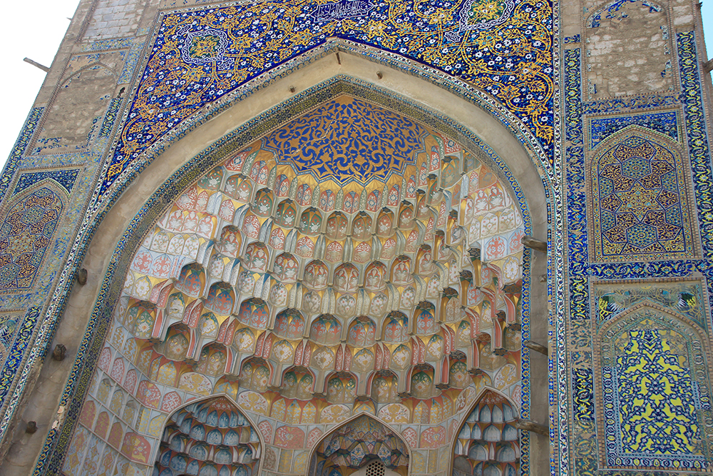 В медресе Абдуллазиз-хан очень красивый вход с мукарнами.