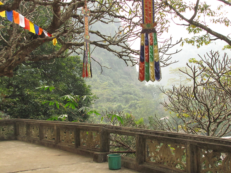 Сперва полезли наверх по ступеням в Ароматную пагоду. Туда можно доехать на канатной дороге, мы же предпочли погулять. Путь, правда, сильно испорчен многочисленными павильонами страшного вида, которые работают только в сезон, а в декабре закрыты. Они загораживают пейзаж.