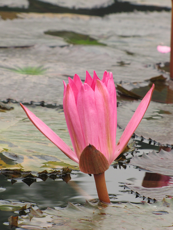 По берегам цветут розовые нимфеи.
