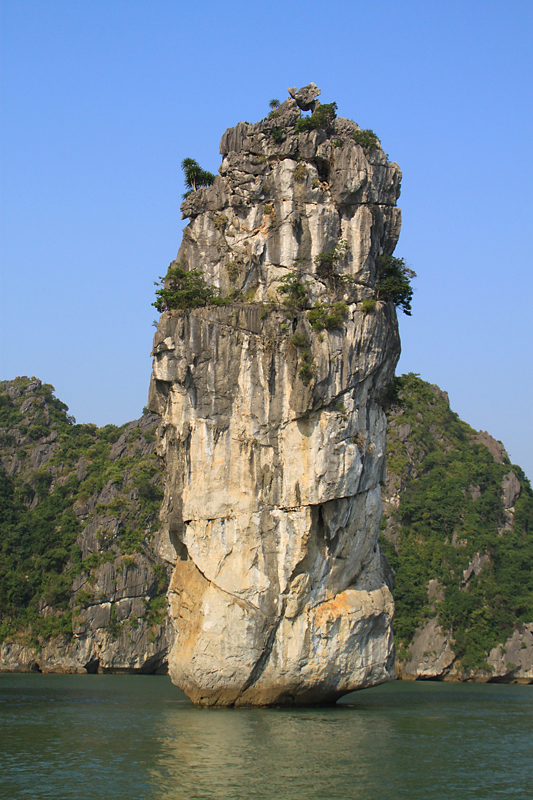 На самом острове стоят такие же скалы, как в воде. И вообще, по описаниям получается, что острова бухты Халонг в течение своей истории то уходили основаниями под воду, как сейчас, то оказывались на суше, когда море отступало.