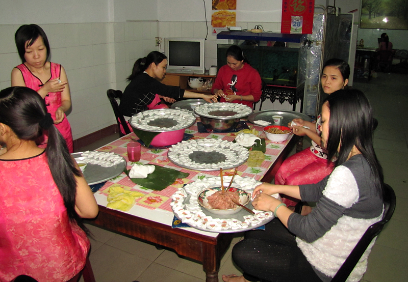 Для того чтобы отведать «белую розу», имеет смысл дойти до главного места изготовления этих пельмешек — 533 Hai Ba Trung. На вывеске так и написано — White rose (а ниже по-вьетнамски Ban bao). Другие ресторанчики города покупают «розы» здесь. Поэтому девочки сидят и лепят их сотнями.