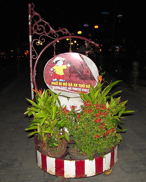 В исторический центр Хойана вечером (а конкретно в 18:30) перестают пускать транспорт с мотором. Улицы перегораживают вот такой тумбой.