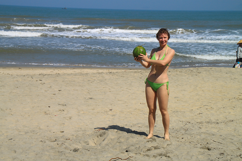 Каким-то шестым чувством мы уловили, что город посмотреть мы еще успеем, а пока хочется на море. Взяв в прокате велосипеды, отправились на пляж. Ближайший пляж в четырех километрах, мы же уехали на Cua Dai (7 км).