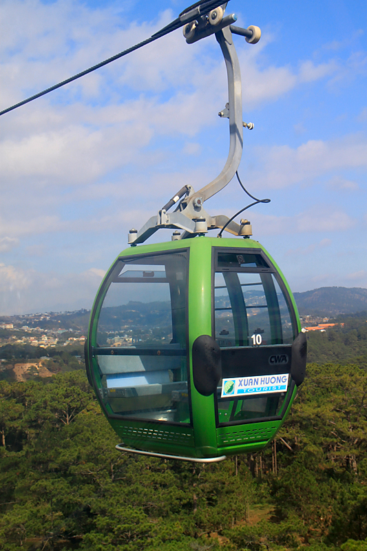 Меж тем канатная дорога снова заработала. Мы оставили байк у храма и отправились покататься. Ее протяженность — 2.3 км, поездка туда-обратно стоит 70 кД.