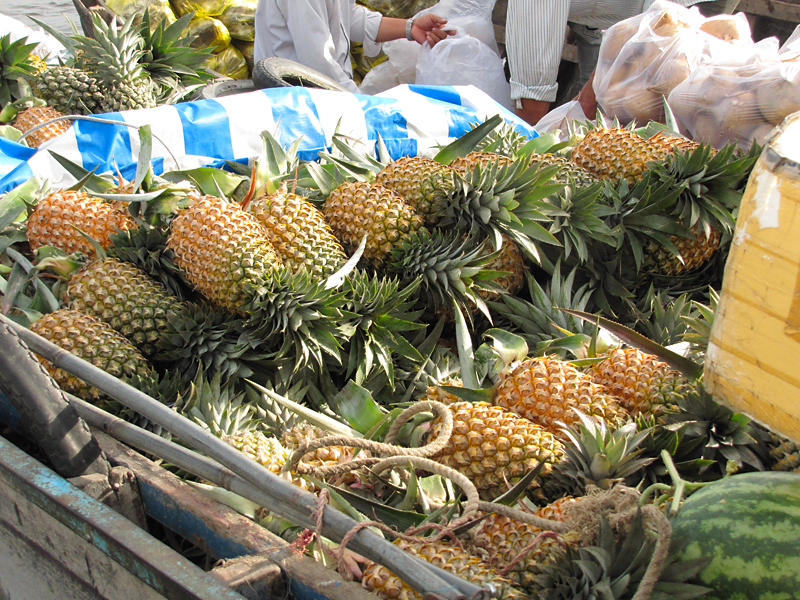 Наш катер причалил к одной из ананасовых лодок и всем желающим выдали по ананасу. Туристическая цена за штуку — 10 кД (0,5$), могу себе представить, сколько они стоят для местных жителей!